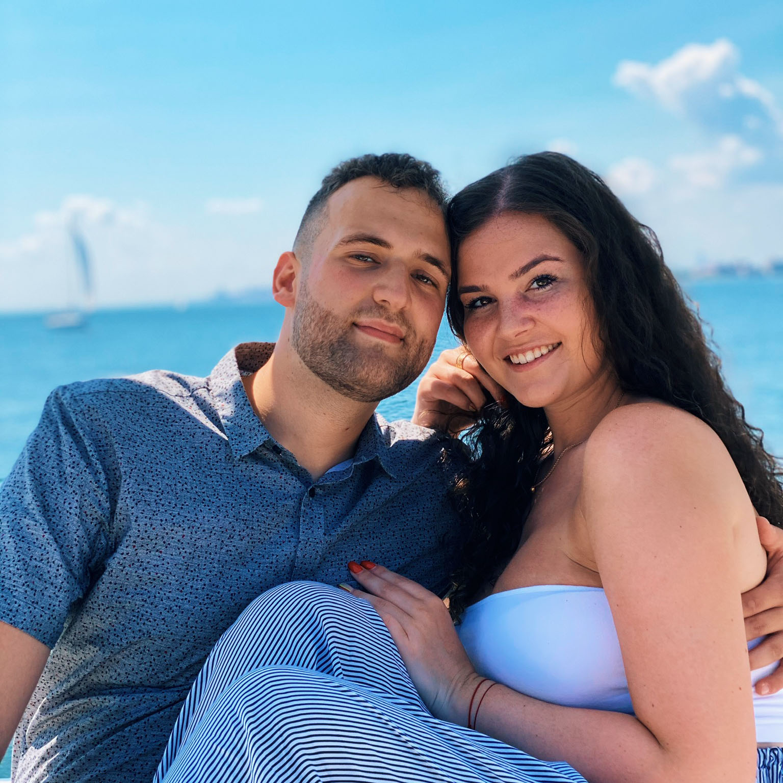 On the first night of a Birthright Israel trip in June 2017, Brian and Jennifer met for the first time and knew it was meant to be. They shared their first kiss in Jerusalem, and Jennifer now wears a bracelet with the Holy City’s coordinates, gifted by Brian.